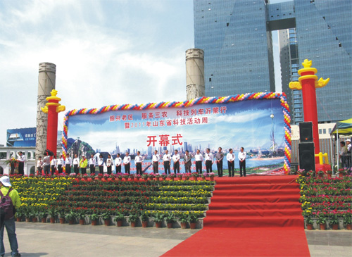 5月14日,“振興老區(qū) 服務(wù)三農(nóng) 科技列車沂蒙行”活動在臨沂市舉行。山東省委常委、副省長孫偉、省政協(xié)副主席李德強(qiáng)出席開幕式?萍疾奎h組成員、紀(jì)檢組組長郭向遠(yuǎn)出席開幕式,科技部等部委有關(guān)領(lǐng)導(dǎo)、科技列車專家服務(wù)團(tuán)全體成員,臨沂市副市長左沛廷等有關(guān)領(lǐng)導(dǎo)以及社會各界代表也參加了開幕式。